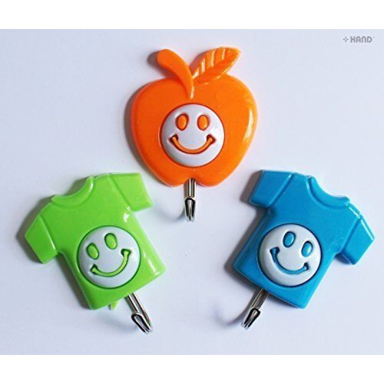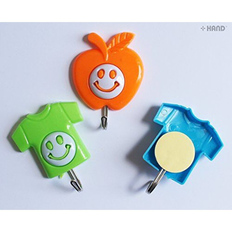 9903 Easy to Attach Powerful Multi-purpose Kids Self Adhesive Hooks Assorted Colours and Shapes - Pack of 3, Load 2kg - 3 Packs Deal