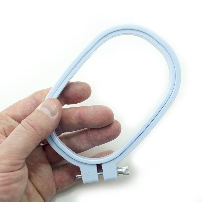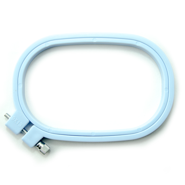 - A rounded rectangular shaped plastic embroidery hoop