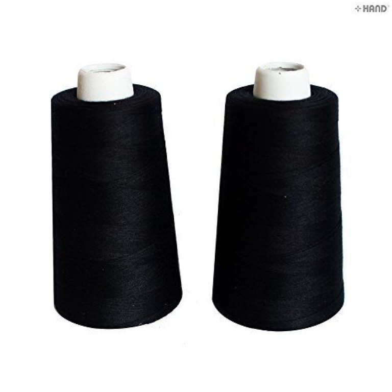 Assorted Colours and Thicknes Polyester Threads - Pack of 2 (Under Stitching 20S/2 Black 2 Ply 1600m)