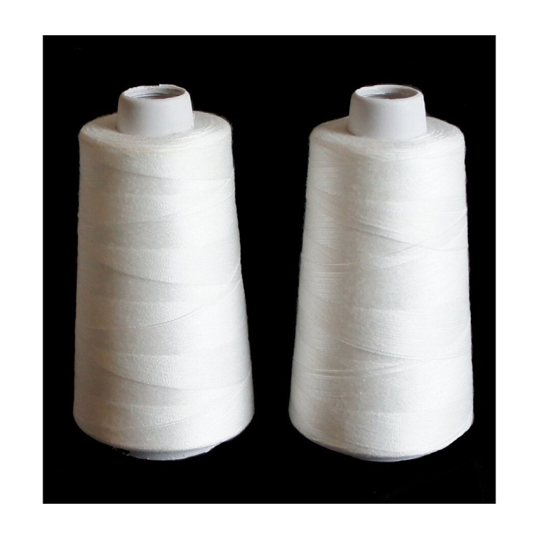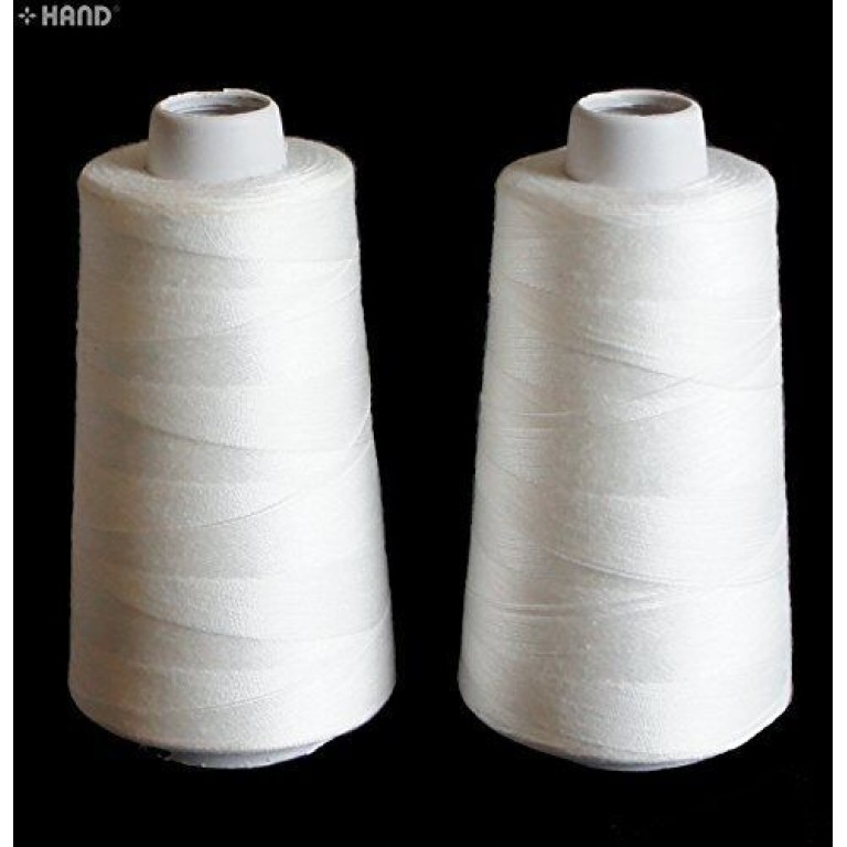 Assorted Colours and Thicknes Polyester Threads - Pack of 2 (Under Stitching 20S/2 White 2 Ply 1600m)
