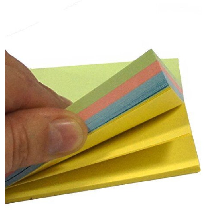 4 pads of 100 sheets pastel colour sticky notes.Size: 76x76 mm.Sticks to almost any surface and doesn't fall off.Paper colours: blue, yellow, pink, green.