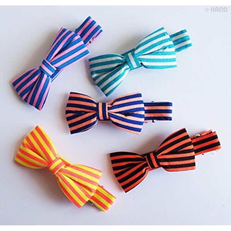 - 5 beautiful fashionable stripy bow alligator clips.