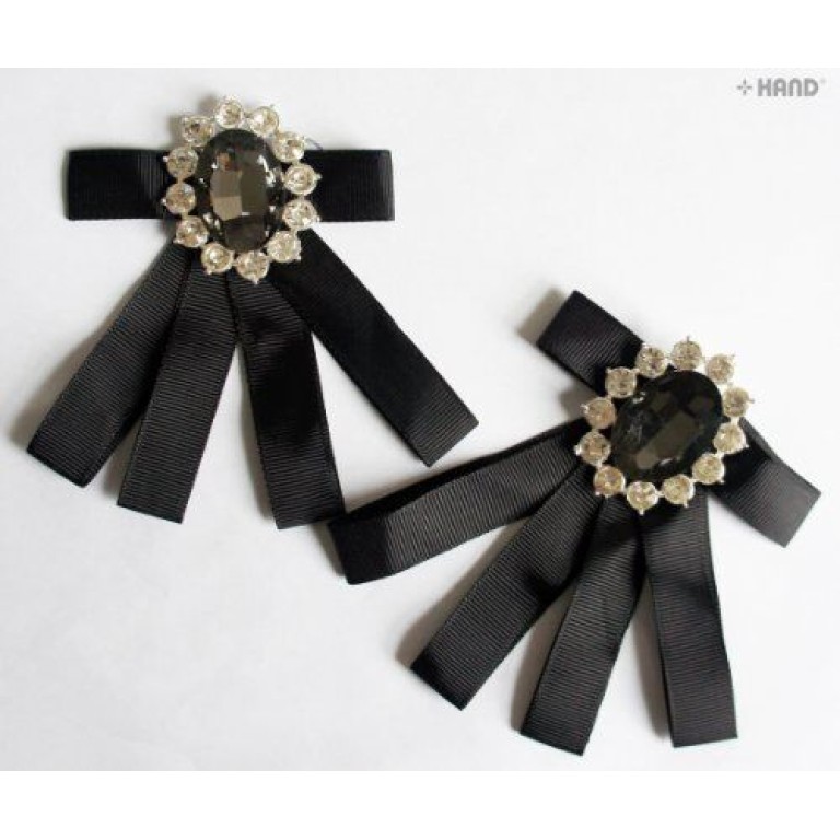 BR03 Beautiful Vintage Elegant Stone and Ribbon Brooch with Clear Crystals - pack of 2