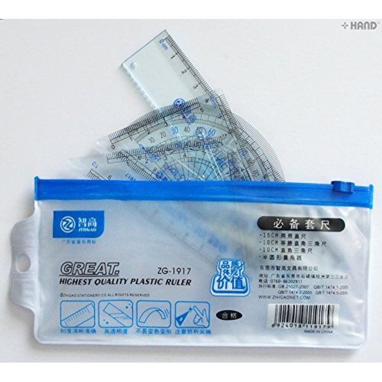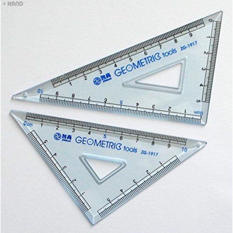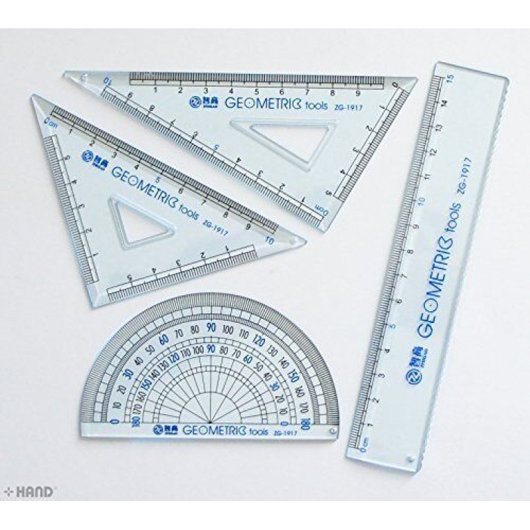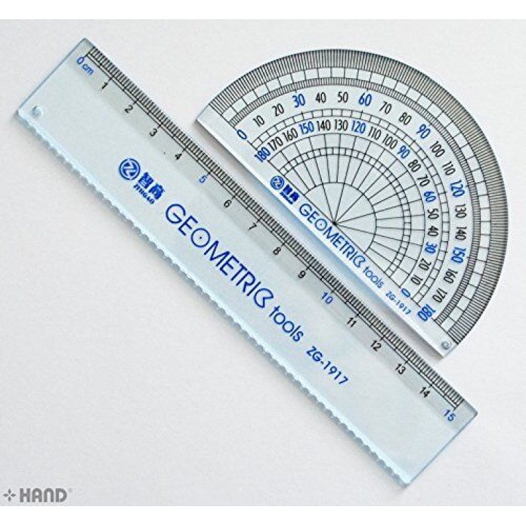 - 15 cm ruler, 180 degrees protractor, 2 triangles