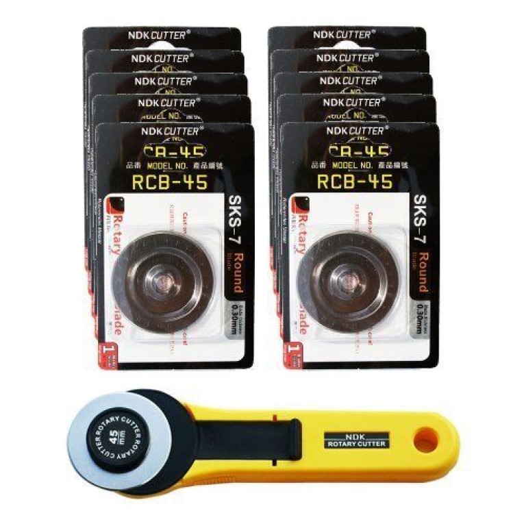 NDK rotary cutter is highly suitable for those professionals, it has long lasting NDK blades which can keep your comfort though your many working hours. The cutter handle is light and incorporates an ergonomic handle, which helps to reduce hand and wrist fatigue when performing lengthy tasks, and features a dual-action safety mechanism. It is designed to accommodate both right and left-handed users. With a 45 mm blade is a deluxe rotary cutter designed for accurately and efficiently cutting fabric into shapes and strips. Its sharp blade easily slices through thin and thick pieces of fabric, making it ideal for multi-layer and gentle curve cutting as well as sewing, quilting and craft. The cutter is designed and made just like olfa and fiskars, quality guaranteed.