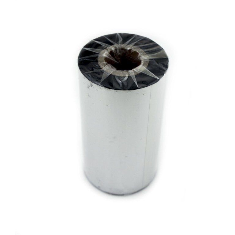 - Black ink printer ribbon roll for washcare fabric labels printing.