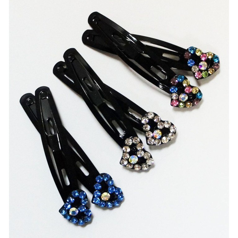 Diamante Crystal Hair Clips. 3 pairs of assorted colours hair clips. Size: approx. 65 mm long. Strong Clasp ensures it stays firmly in place. Will look beautiful in your hair.