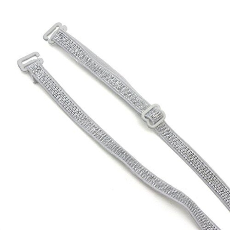 Bra shoulder straps - elasticated and adjustable. Colour: silver. Size: 9mm width. 10 pairs. Ideal for making, modifying or mending your bras.