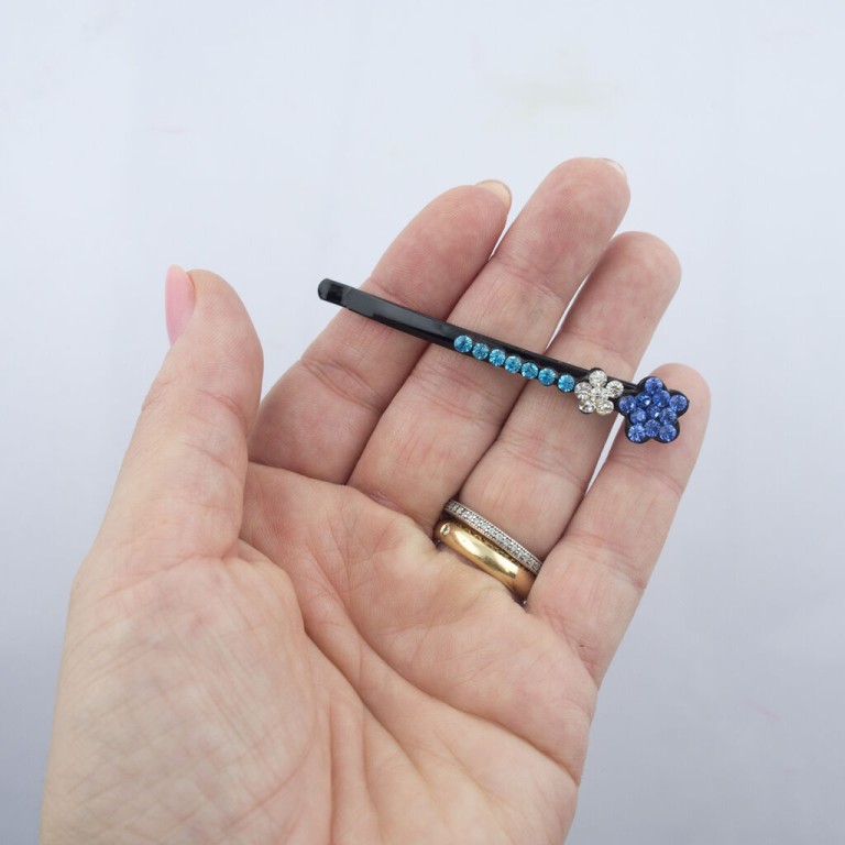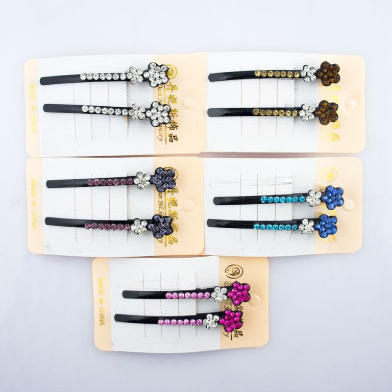 - A pack of 3 pairs of cute hair clips with a colourful crystal flower design.