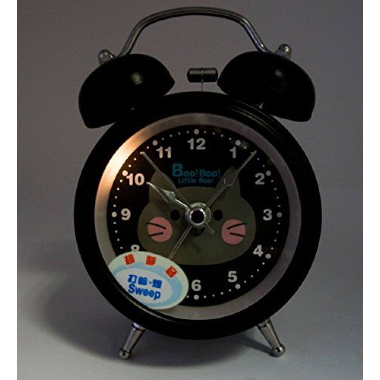 • HAND twin bell children's alarm clock with happy cat clock-face and 'Boo! Boo! Little Boo!' logo.