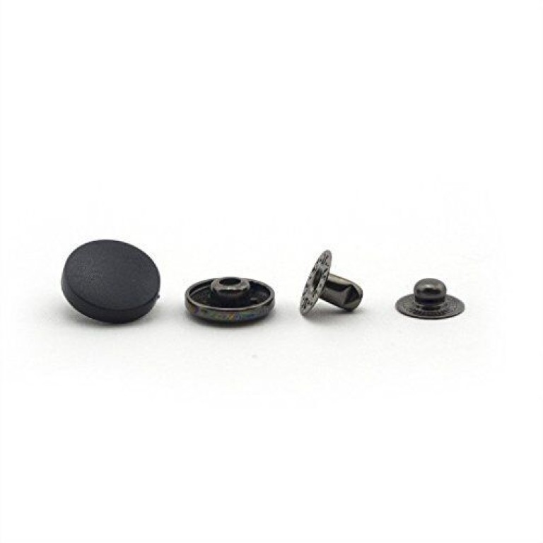 20 sets of push on press studs buttons .Colour: Black and dark copper. Size: 12.5 mm diameter. Can be use on jackets, shirts, skirts, shorts, etc... Button top, top cover, button base, base cover.