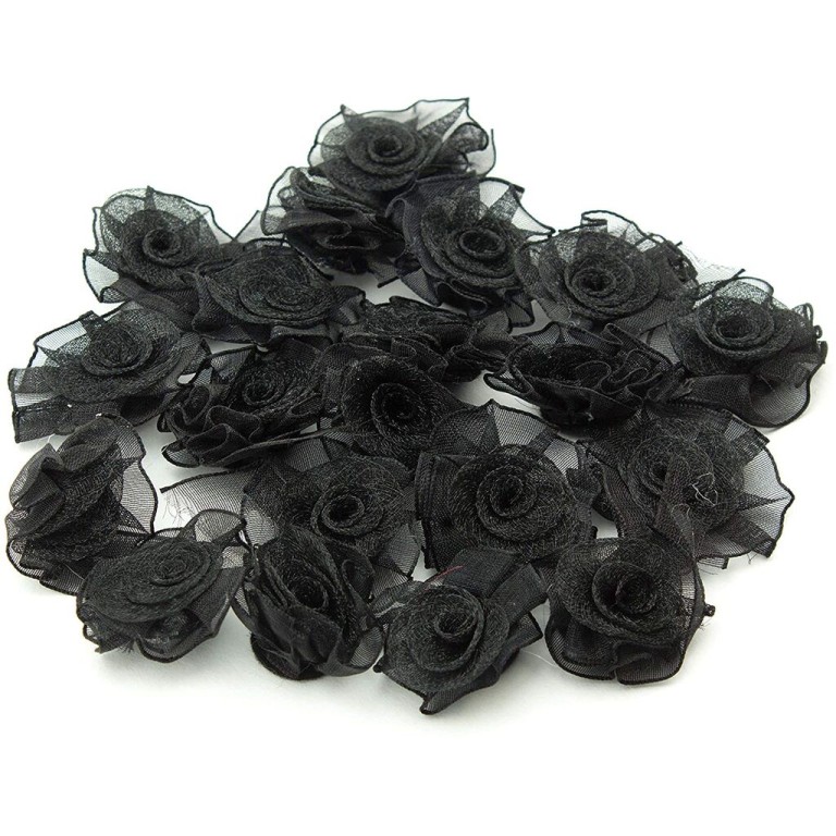 Attractive sew in organza flower trims to add a fashionable touch to dresses, blouses, skirts, outfits, bags and accessories. Pack of 20. Size: 32 mm x 32 mm. Colour: black. Material: organza. Adds a colourful floral touch to any outfit for any occasion.