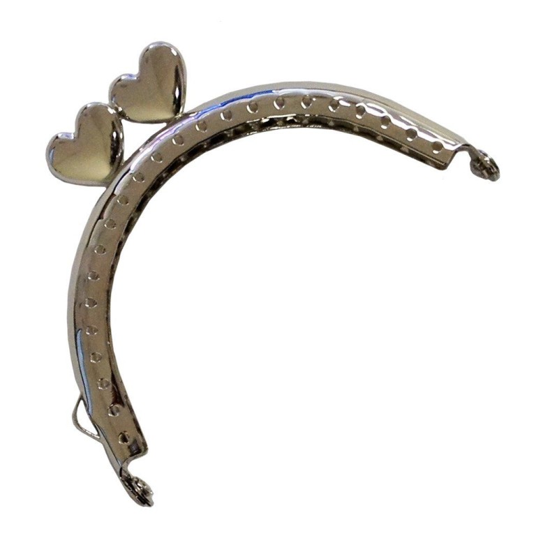 - Arched purse frame with heart shape kiss claps lock handles.