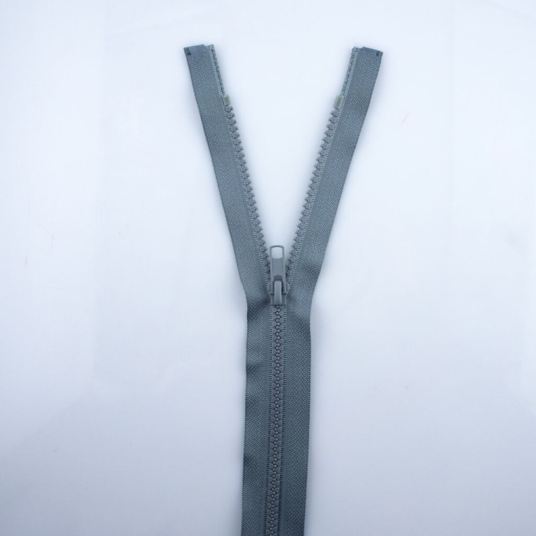 A pair of No.5 plastic closed-end automatic zips. Size: 60 cm long x 33 mm wide. Teeth width: 5.5mm. Colour: Navy. Great for professional, student and home fashion projects and garment repair, adjustment and customisation. Material: plastic and fabric.