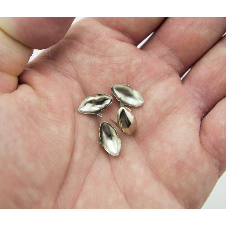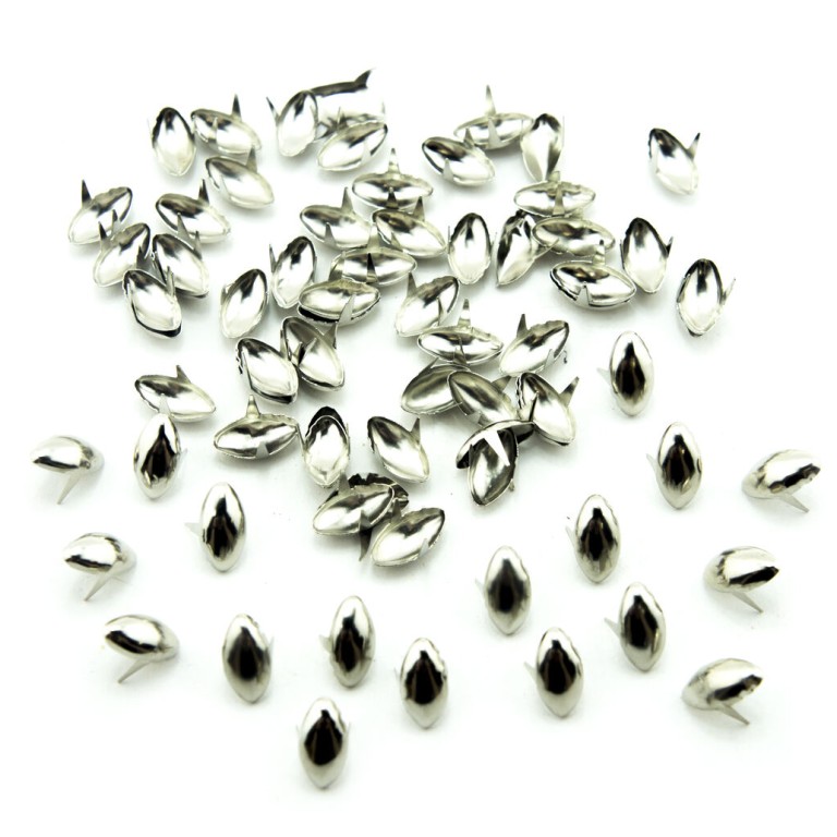 - A set of 50 oval shaped metal studs for leathercraft, jackets, belts, jeans, bags and accessories.