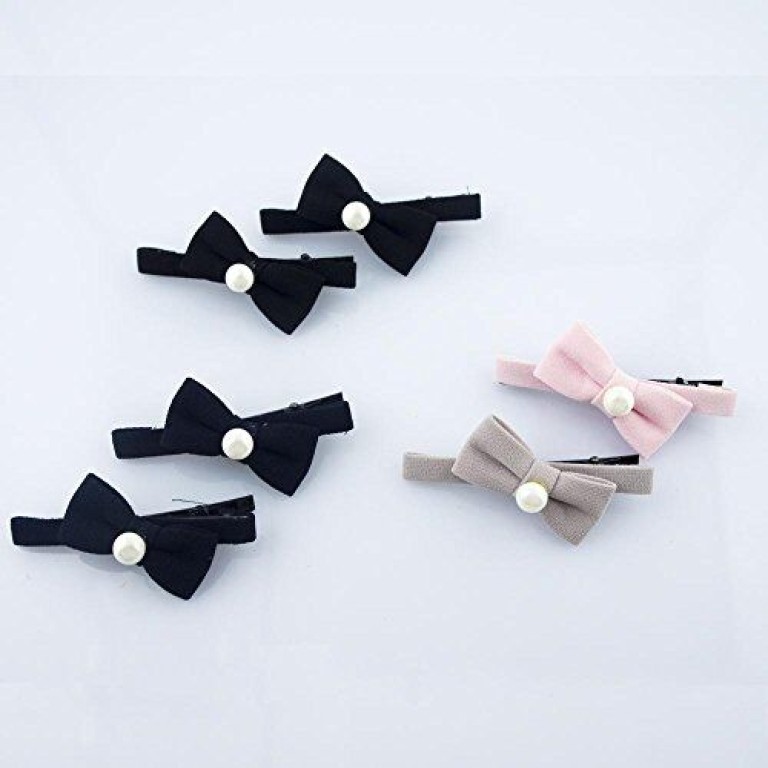 - 4 pcs of stylish, attractive hair clips with fabric bows and pearl-effect beads.