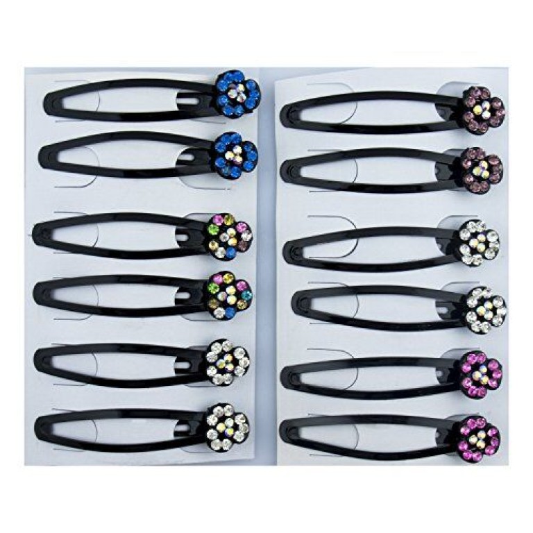 - A pack of 3 pairs elegant hair clips with crystal bloom motifs.