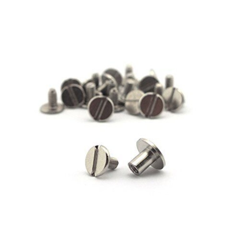 Stylish silver binding screws for organising papers, binders, folders, notebooks, fabric samples. Pack of 25. Total length when screwed tight: 10mm, takes up to 8mm thickness of paper/fabric. Studs with a screw perfect for binding fabric or paper together. Screw and lock in - extra secure so papers/binders/folders,notepads/fabric samples stay in place.