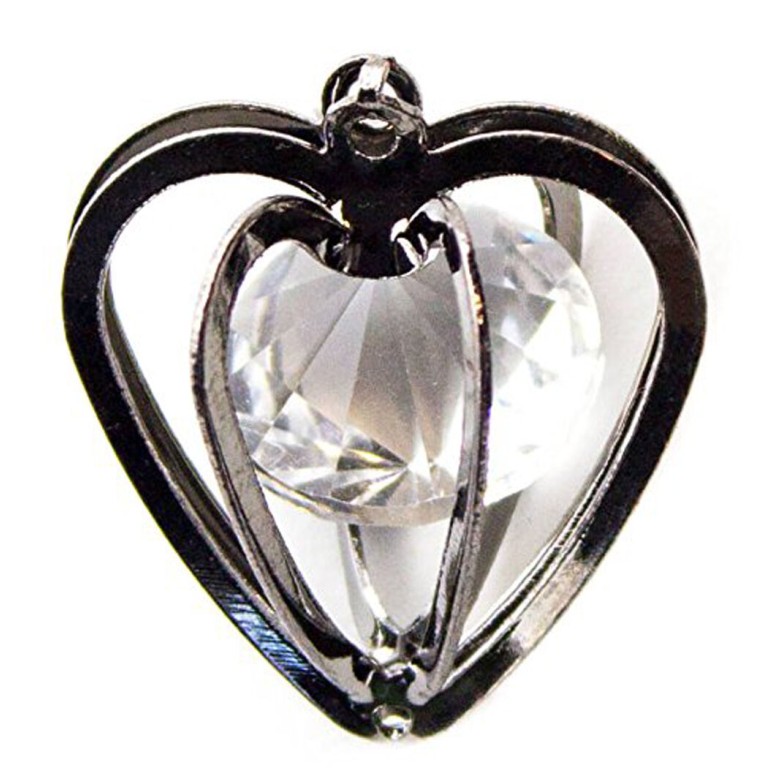 Diamond heart design pendant with a diamante cubic zircon crystal in a silver coloured heart shaped cage. Pack of 3. Size: 25 mm x 22 mm. Colour: silver and crystal. Material: diamante and metal. Adds a distinctive, stylish touch to any chain or necklace.