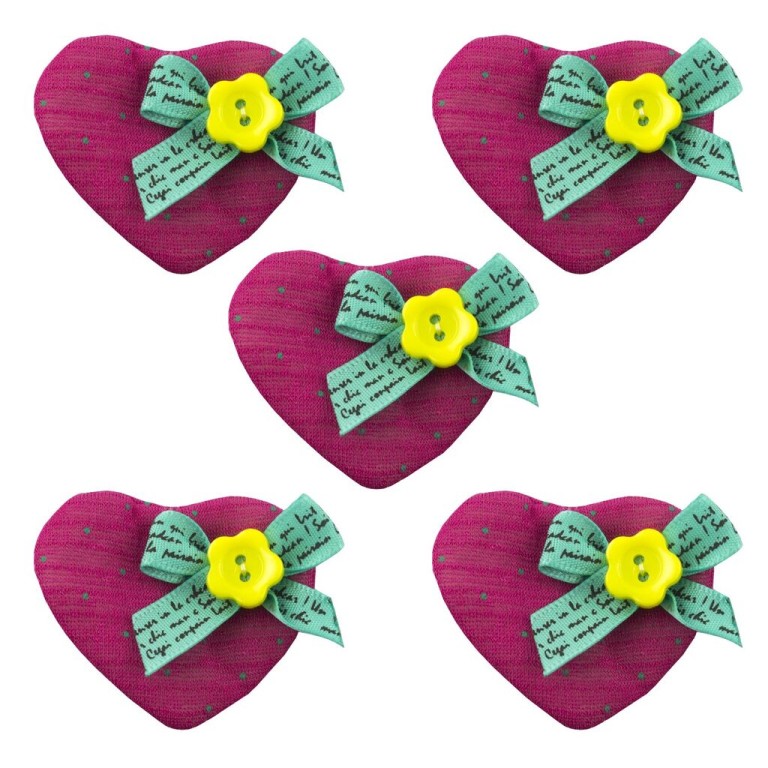 Attractive sew in decorative polka dot heart fabric trims, for embellishing crafts, clothes, outfits and accessories. Pack of 5 Colour: peach pink. Size: 50 mm x 30 mm. Perfect for invitations, occation, Christmas & wedding, baby christening card making etc.