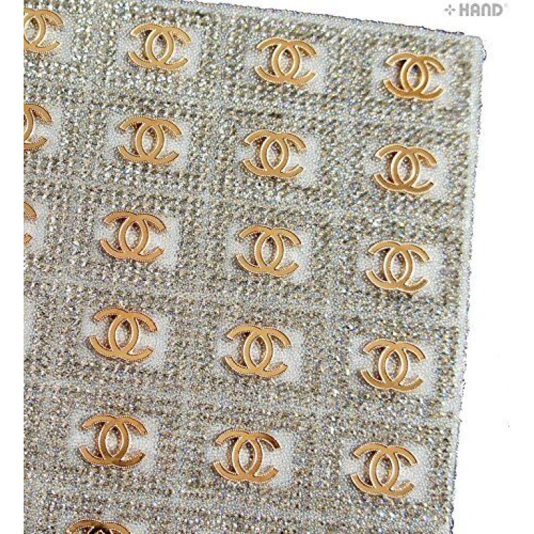 HAND Luxurious Iron-On Hot FIX Embellishments Rhinestones on Sheet - Assorted Designs and Colours (IRONE07 - Chanel Gold)