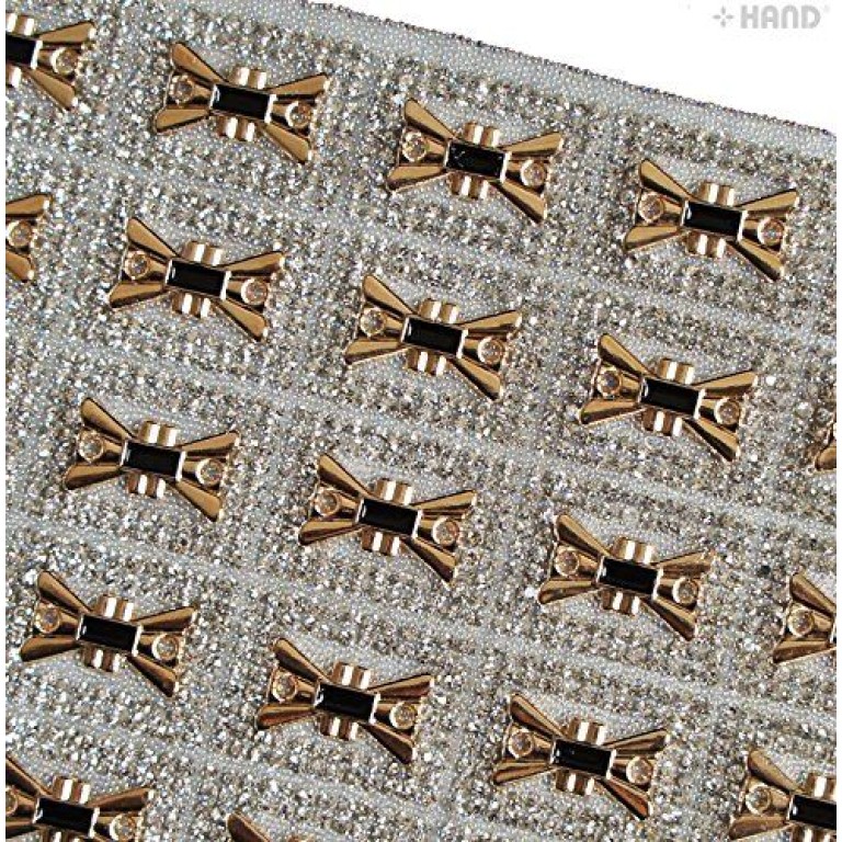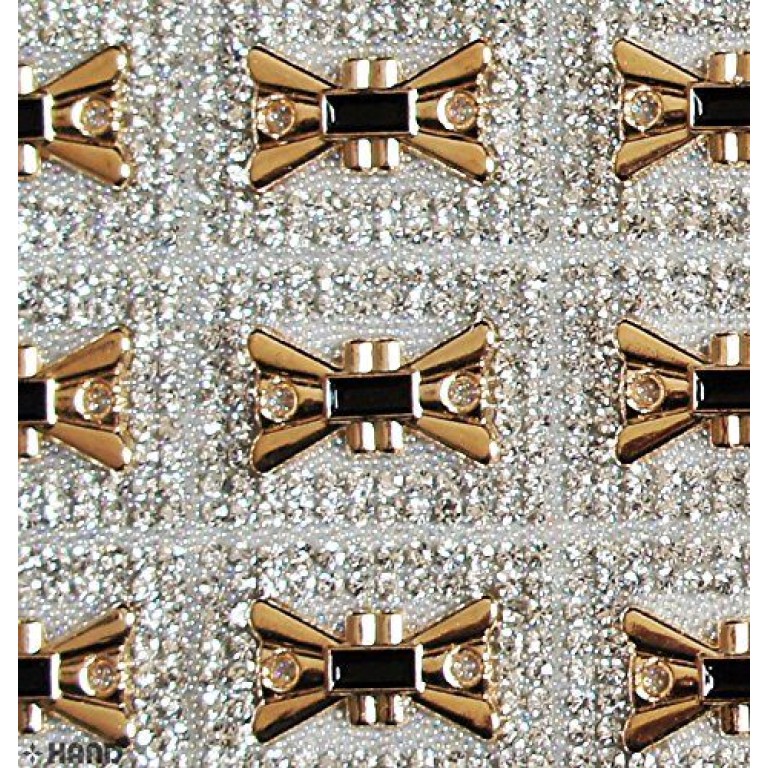 - 130 Gold and black bows with rhinestones and tiny balls around on continuous Iron-on sheet (can be cut to any size).