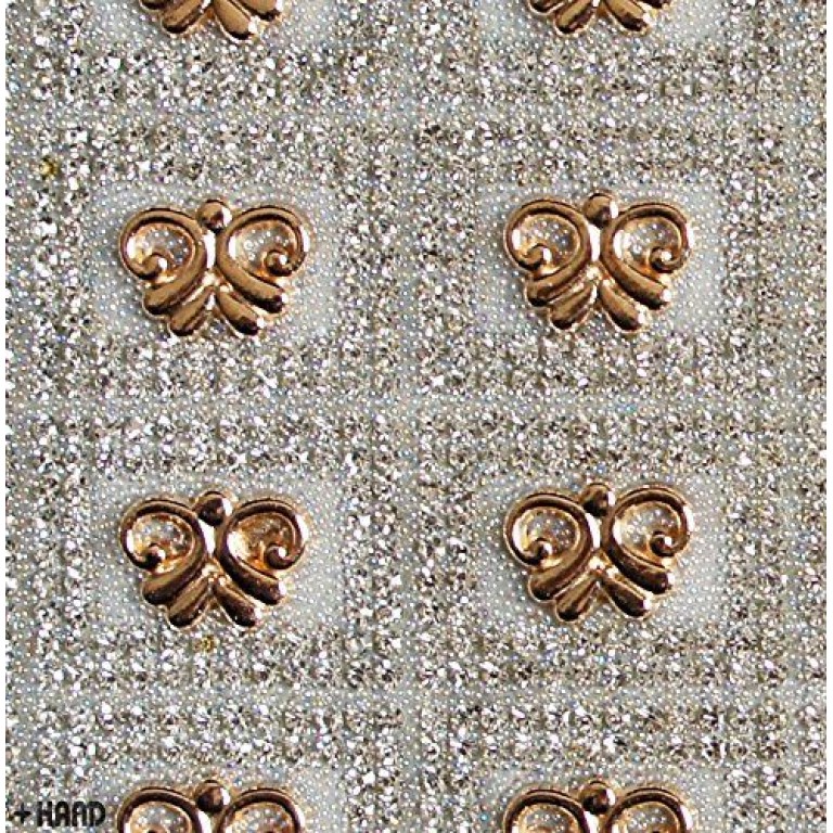 - 130 Gold ornaments with rhinestones and tiny balls around on continuous Iron-on sheet (can be cut to any size).