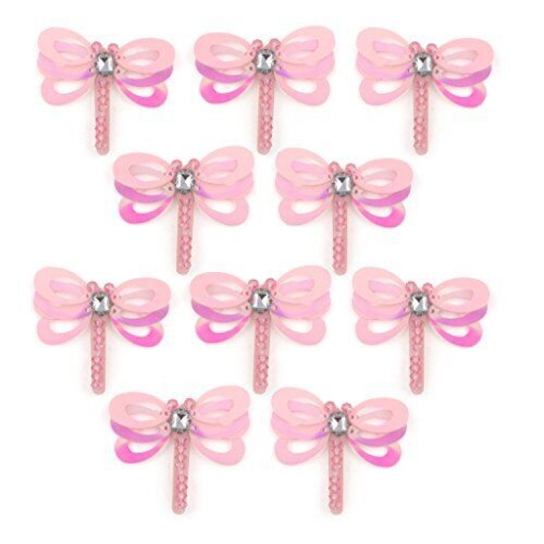 Pink dragonfly circle sequins trims with diamante and beads. Pack of 10. Size: 42mm x 52mm. Colour: pink with diamante. Perfect for adding a touch of style and colour to dresses, skirts, blouses, accessories etc.