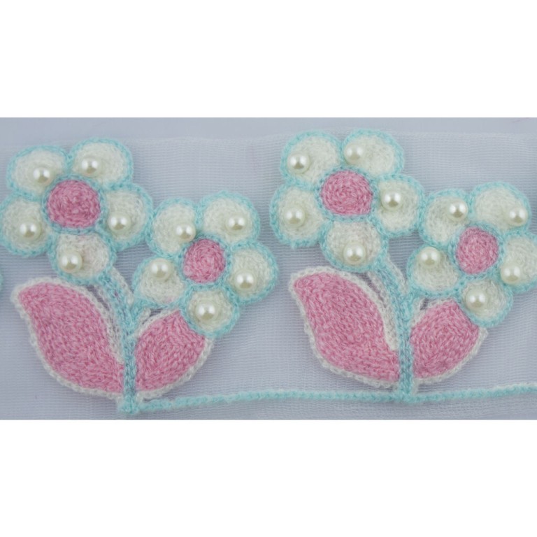 - Pretty pastel pink, white and blue flower design with pearl effect beads.