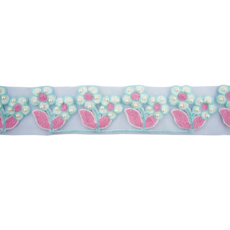 - Half metre of attractive decorative trim with clear net backing can be sewn straight onto garment.