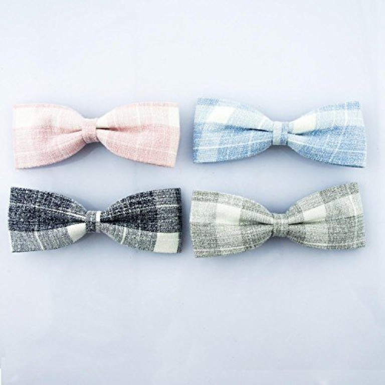 - 2 pcs of stylish, attractive hair clips with check pattern fabric bows.