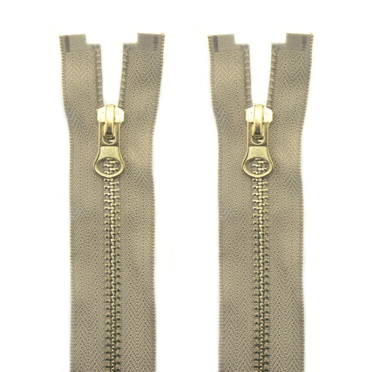 - A pair of No.5 metal open-end zips, zip in gold colour.