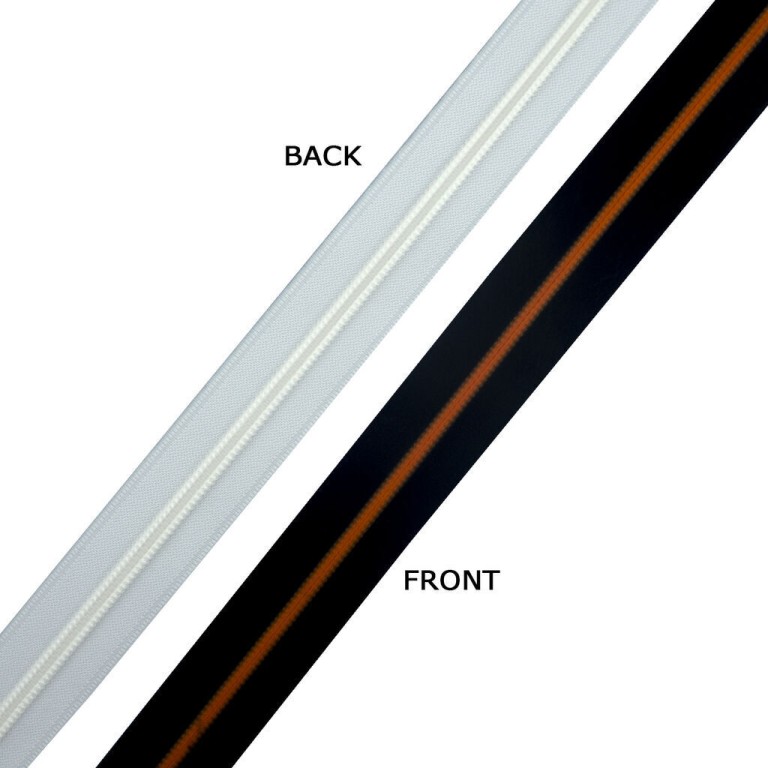 - Black and orange highlight zip, 30 mm wide. Zip width 6mm.