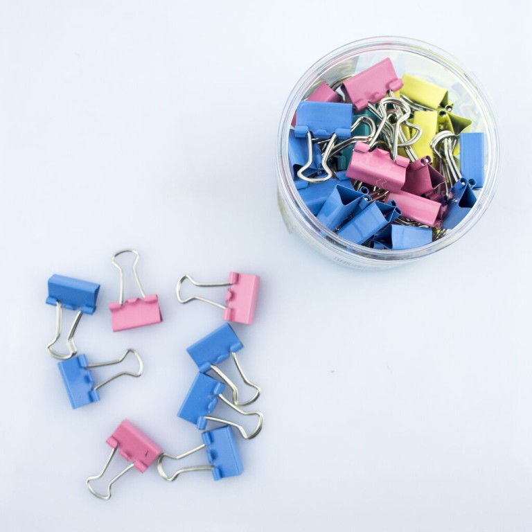 - A pack of colourful metal foldback bulldog clips for home, school and office.