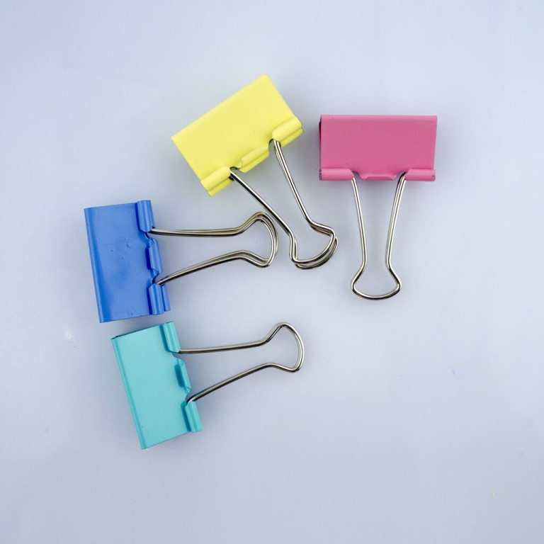- A pack of colourful metal foldback bulldog clips for home, school and office.