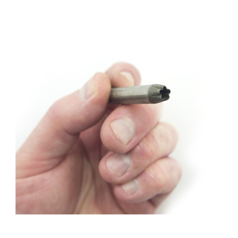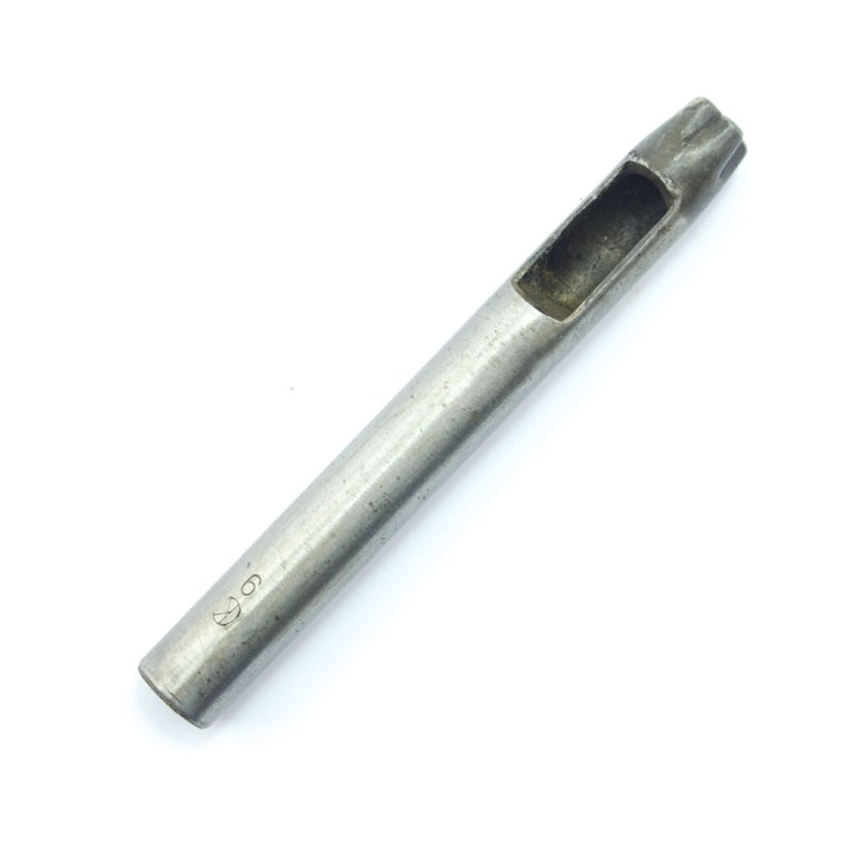 A sturdy hollow steel leathercraft hole punch for leather, suede and craft work. Design: 5 point rounded star 6 mm Punch length 10 cm approx Ideal for making clean holes in gaskets, leather, plastic, rubber, vinyl and other soft materials. Perfect for home, student and professional leather workers and crafters.