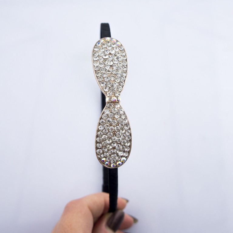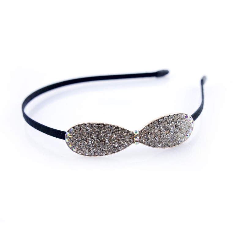 - A stylish, elegant black Alice band hairband with an elegant crystal motif.
