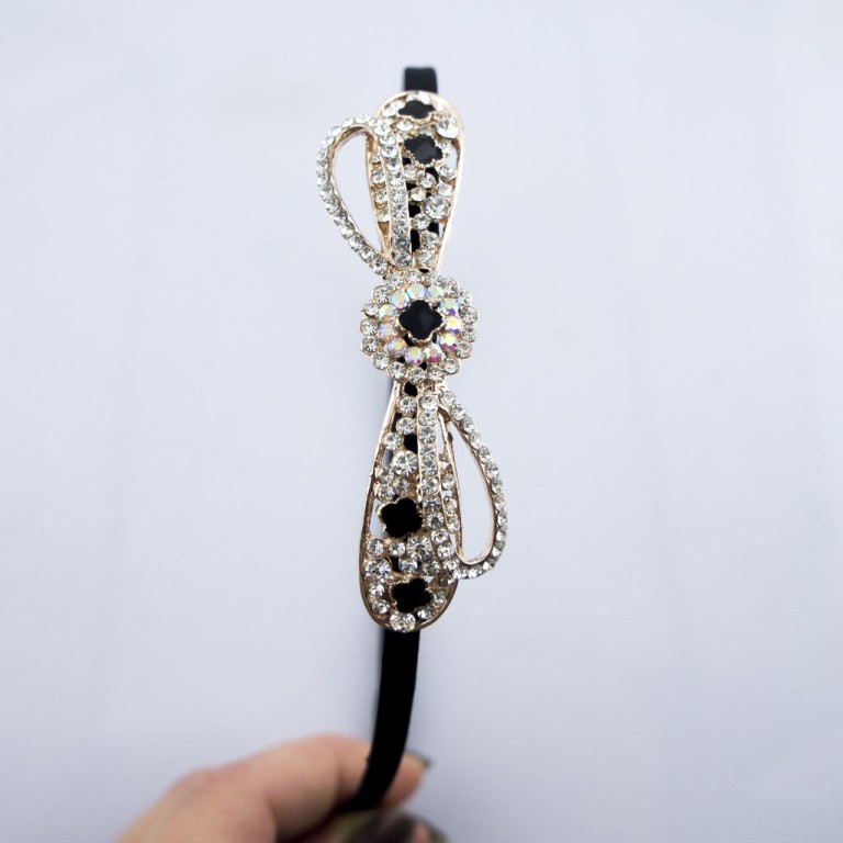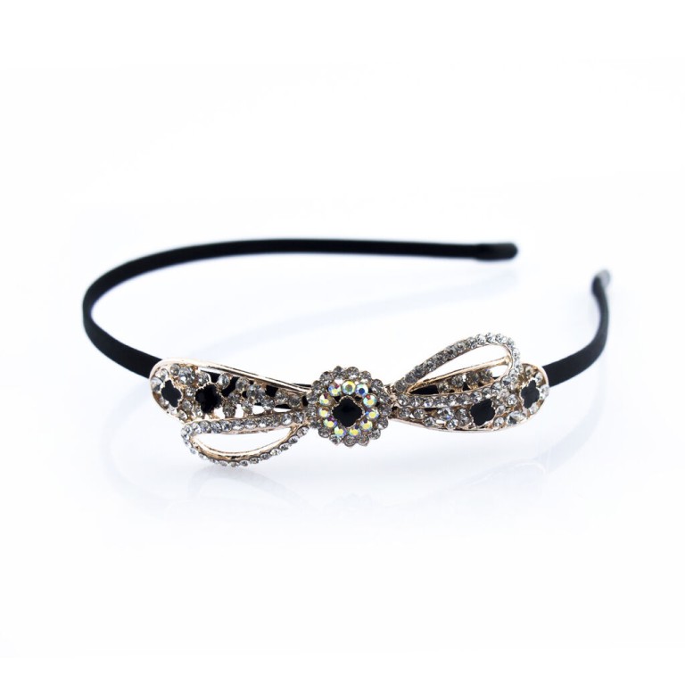 - A stylish, elegant black Alice band hairband with an elegant crystal motif.