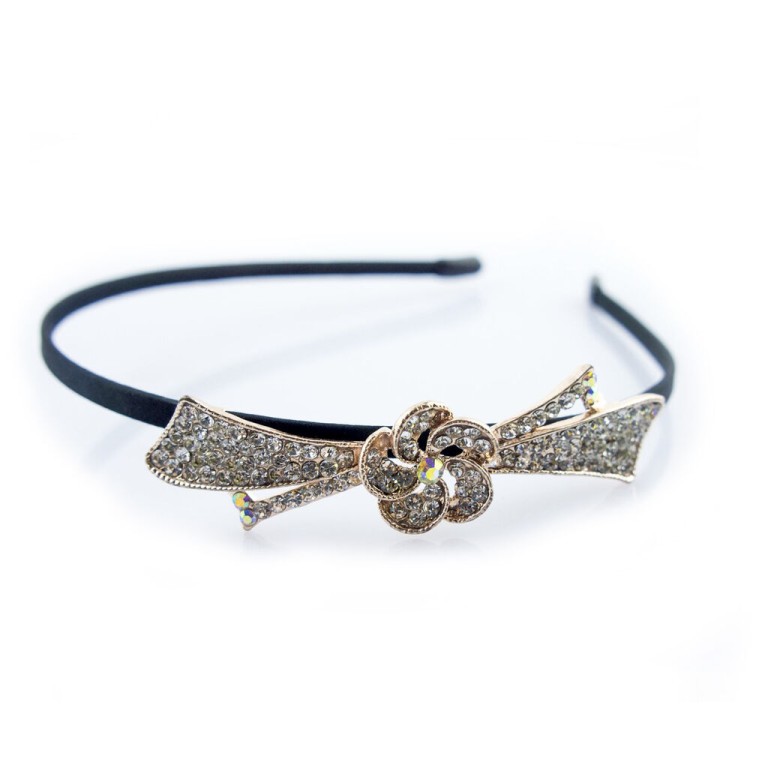 - A stylish, elegant black Alice band hairband with an elegant crystal motif.