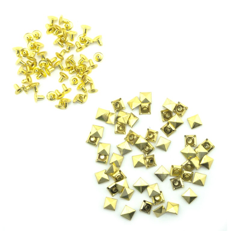 - A set of 50 pyramid metal studs for leathercraft, jackets, belts, jeans, bags and accessories.
