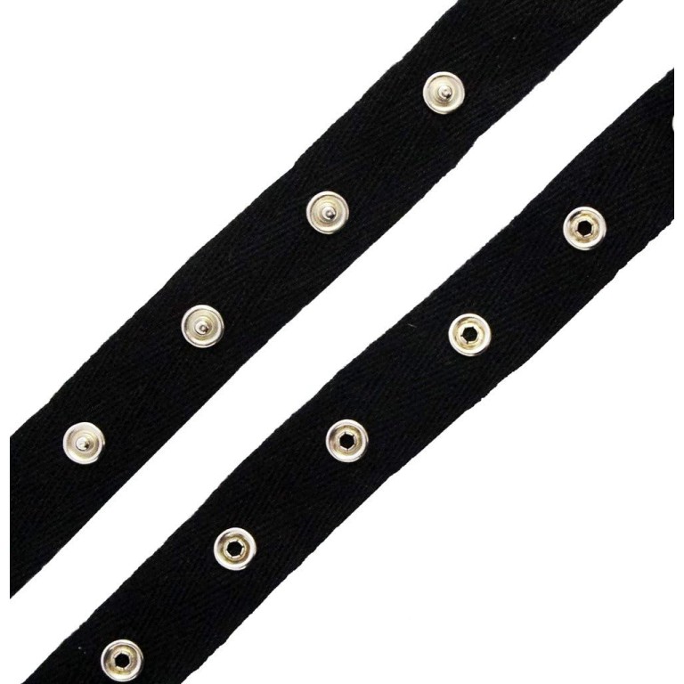 - Silver snap buttons 8mm 2-part black cotton tape.