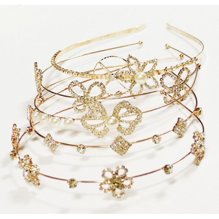 Pack of 2 assorted designs all metal and rhinestones headbands. Size: 12 cm diameter. Made from metal - rose gold tone colour. Will add a beautiful and fashionable look to you hair. Great for wedding, party and every day wear. Design may vary - picked up randomly.