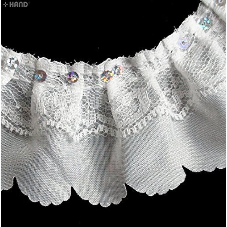 714 White Decorative Two Layer Nylon Lace with Sequins Trim - 10m