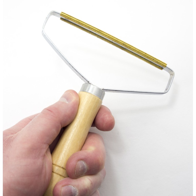 A pair of lint and bobble removers, perfect for cleaning fuzz and hairs from clothes, soft furnishings and carpets. Restores your garments and fabrics to their perfect condition Ideal for removing fuzz, lint, fluff, bobbles and pet hairs Made of metal with a comfortable wooden handle, they are lightweight and easy to carry, and also durable and hard-wearing Dimensions: 15 x 13 x 2 cm approx No battery required, making these the most practical means of keeping your clothes and materials in perfect condition wherever you are