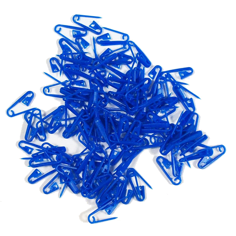Pack of 1000 blue garment plastic pins. Size: 22mm long, 8mm wide. Easy and fast way to attach labels, hang tags, fasteners, etc...Assorted colours.