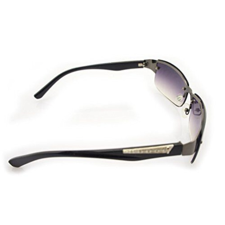 A stylish unisex pair of aviator sunglasses with silver skull and bones design at the temples. Frame size (approx): 134 mm wide (temple to temple) - 140 mm arm length. Lens size (approx): 62 mm wide - 38 mm deep. 100% UV400 protection. Colour: black and gunmetal grey frame. Violet lenses. A fashionable addition to any outfit - greet the sun in style, any time of year!