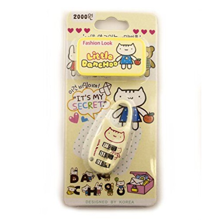 Little Danchoo "It's My Secret" funky 3 digit combination padlock in a range of styles and colours. Perfect for keeping your special secrets safe at home and school - bags, lockers, secret diaries and valuables. With 1000 possible combinations, your secrets will be safe with Little Danchoo! Made in Korea, with a sturdy metal construction to withstand life's little knocks. Material: metal. Colour: cream. Exact padlock shape may vary from photograph.